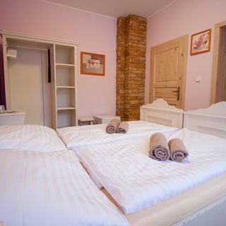 październik 2021Měly jsme čtyřlůžkový pokoj,prostorný ,čistý,,televize ,sprchový kout.....prostě spokojení ,vše nad naše očekávání...navštívily jsme také v přízemí saunu a vířivku což bylo bezvadvé.