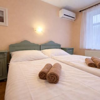 blízko centra; cca 2 km k přehradě; přístup paní majitelky; kuchyňka s vařičem a lednicí; TV s nabídkou Skylink (Astra 23,5° + 19,2°); vlastní parkoviště (3 místa); místnost na kola; klimatizace