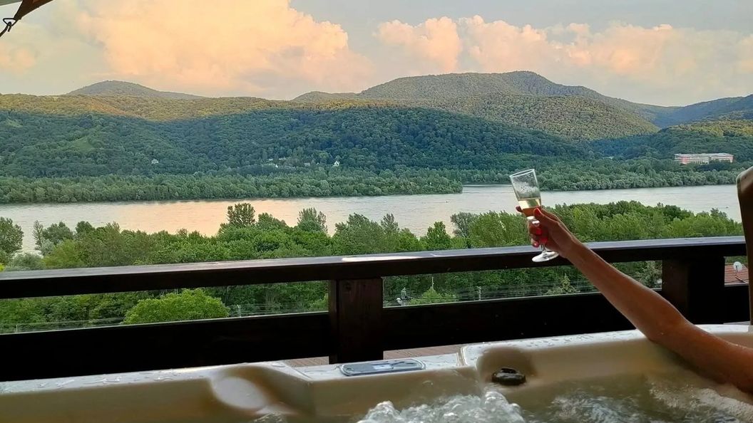 A hatalmas terasz ,a jakuzzi és a szauna a Duna-kanyar pazar rálátásával, számunkra egy csoda volt -lelket testet ,szellemet felüditő érzés - ebben a forrongó és zűrzavaros világban. Ezeknek a napoknak az érzései,pillanatati lesznek a szívünkbe csomagolva Jezusunk születése napjan. Ezekre örökké emlékezni fogunk ,ha felbukkanik valahonnan egy fotő. A fotók nem adják vissza a látványt ,amit megtapasztalsz élőben, ezért én azt mondom ,hogy nagyon megérte az árát ,mert minden elkepzelhetőn felüli élményt kaptunk. Sajnos ,az időjárás nem kedvezett ,mert felhós idő,köd volt mind a 4 nap.A nap nem akarta ,hogy az ő fényében teljes legyen - joggal mondom Magyarország legszebb panorámája. Minden tiszteletünk a tesóké és a segitőjükéi! Köszönjük szépen! Legyen boldog karácsonyotok!