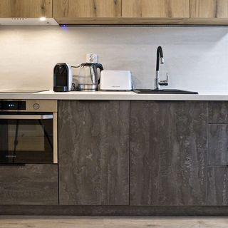 Kuchnia: płyta indukcyjna, lodówka z zamrażanikiem, piekarnik, zmywarka, toster