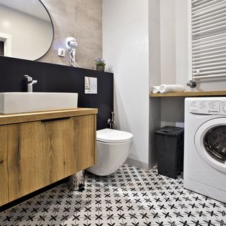 Łazienka: prysznic z deszczownicą, wc, umywalka, pralka