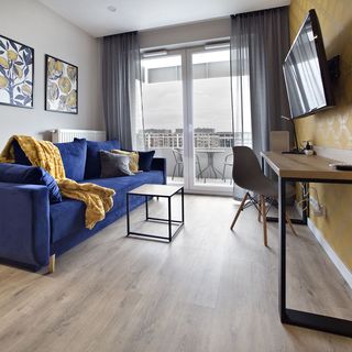 Apartament wyposażony jest w wygodne i eleganckie meble, sprzęt i armaturę. W sypialni znajduje się podwójne łóżko, w części wypoczynkowej apartamentu jest rozkładana sofa dwuosobowa.