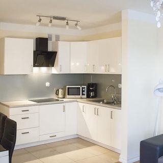 W apartamencie znajduje się bogato wyposażony aneks kuchenny z nowoczesnym sprzętem AGD m.in. lodówką, kuchenką, mikrofalą, ekspresem do kawy oraz kompletem naczyń, sztućców, akcesoriami kuchennymi oraz szklankami i kieliszkami do wina. Pełne wyposażenie aneksu umożliwia samodzielne przygotowanie posiłków wspólnie z bliskimi.