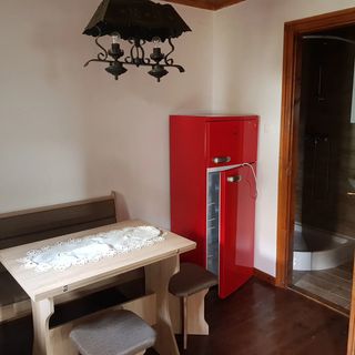 sierpień 2025Alapvetően közepes, alacsony igényű túlárazott turista szállás. Túrázási lehetőségek miatt választottam. Az étkező 4 fő részére elegendő. A hűtő méretes és fagyasztó is van benne, ami nyáron jó. Tv van, ami pixel csík hibás. Internet nincsen, pedig az is a szolgáltatások között fel van sorolva. A ház vastag falazatú, ezért hűvös volt bent, ami nyáron előny.