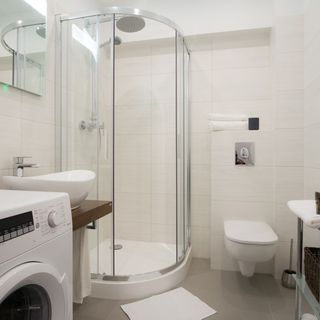 Lazienka: prysznic z deszczownicą , suszarka do włosów, pralka, wc