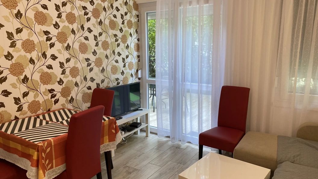 Az apartman egy társasház egyik lakása, de egyáltalán nem hallani a szomszédokat, nem zavaró a közös udvar sem.