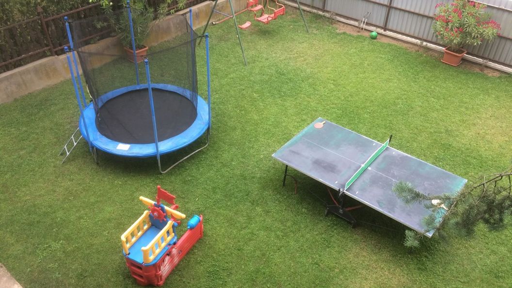 lipiec 2022A terasz igényes volt, nagy, szép bútorokkal, kényelmesen lelehetett ülni étkezni. A kertben elegendő hely játszani. A kisgyerekeknek szuper játékok álltak rendelkezésre. A kerti bútor is igényes volt.