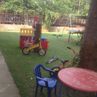 Szerencsére a többi, velünk együtt megszálló család is kedves, normális volt. A kerti játszótér nagyon jó a gyerekeknek. Biztonságos környék. A szobához nagy terasz van. A földszinti részen közös konyha van, ami a szállás választásánál nem volt külön feltüntetve, nekünk elkerülte a figyelmünket. A szoba és a fürdő felújításra szorul. Nincs tv állvány. A függöny fehér, nem lehet sötétíteni. Nincs szúnyogháló.