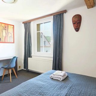 Nadherna poloha u reky s vyhledem na zamek a mesto. Clovek muze byt sam kdyz potrebuje pracovat, ale dole spolecnost pratelskych lidi. Dobre jidlo, ochota recepce, moznost konzultace kam jit, co delat, i pomoc s pocitacem. Trochu z kuchyne dole, ale to mirni chodbicka pred pokojem. Postele by mohly byt pohodlnejsi.