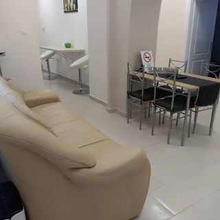 -Tisztaság... az nem volt. Poros, pókhálós, pókos lakás, az ágy alatt vastagon porcicákkal. A konyhában az edények, evőeszközök koszosak, az edénycsepegtető penészes. A falakról potyog a vakolat. A wifi, mint a mesében... Hol volt, hol nem volt... Nagyon rossz megoldás, hogy a szobákat külön adják ki, mert a közösségi terek nem alkalmasak 3 idegen pár kiszolgálására. Pl. 1 wc van, amely a fürdőszoba része, ha vakakit fürdik, akkor senki sem mehet WC-re...De a nappali és az étkező sem alkalmas 6 embernek. Ez az egész 1 apartman, ennek megfelelően kellene beárazni és kiadni. De ez csak az én véleményem...