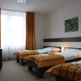 sierpień 2018Hotel se nachází v sídlištní zástavbě nevadí to, byl tam klid. Služby jsme žádné nevyužívaly. V ceně za 1100 Kč za pokoj nebyla snídaně, což jsme v jiném hotelu měly. Do centra Břeclavi jsme jezdily autem cca 2 km, nevadilo nám to. Parkování uvnitř areálu - to bylo příjemné. Obchod s potravinami a večerka cca 30 m. V pokoji malá chladnička.