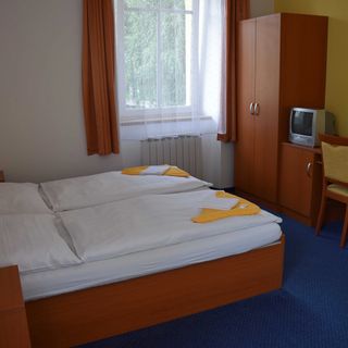 luty 2024Čistota a klid, vstřícný personál, poloha hotelu a parkování. Možnost využít kuchyňku k přípravě teplého nápoje.