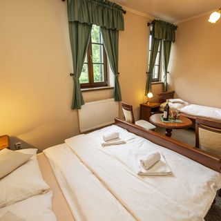 Gości poszukujących noclegu w Buchlovice zapraszamy do rezerwacji ładnie umeblowanych pokoi w Lovecký zámeček Buchlovice. Dokładna lista usług dostępnych w Lovecký zámeček Buchlovice (zawierają również te wymagające dopłaty) i dokładne wyposażenie pokoi w informatorze poniżej, oraz w informatorze konkretnego pokoju.