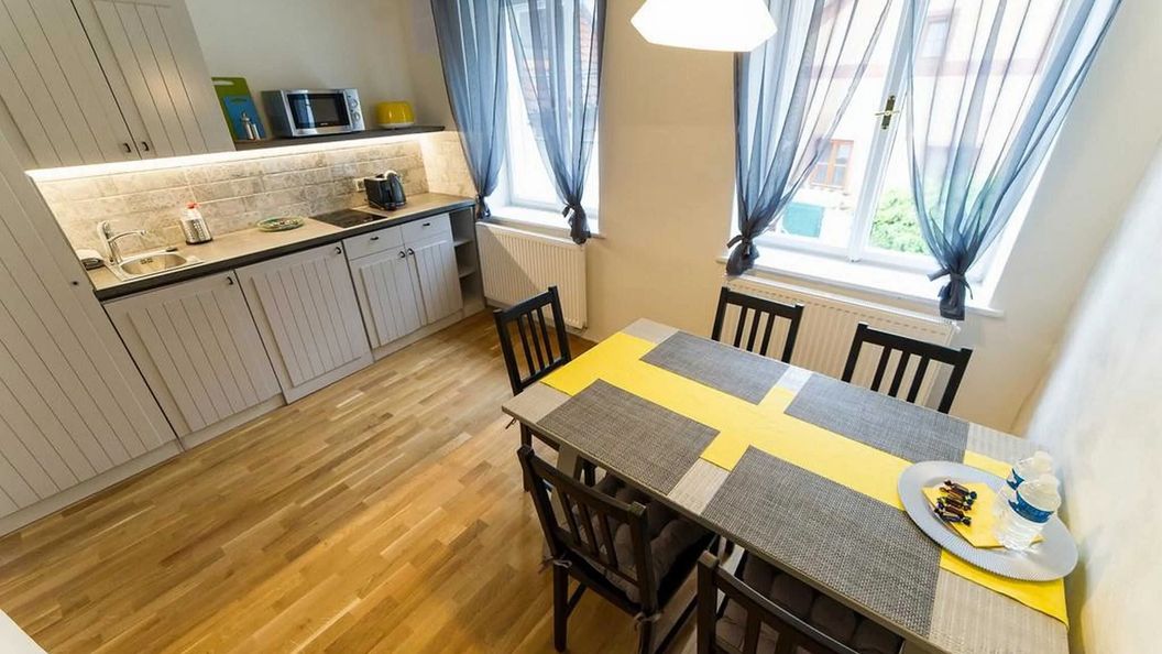 lipiec 2021Dobrá poloha poblíž historického centra, v docházkové vzdálenosti tři dětská hřiště včetně dopravního s funkčními semafory. Vlastní parkování poblíž apartmánu, ovšem za poplatek. Výhled na město. V parných dnech je ve starém domě stále příjemně. Všechny dveře se otevírají pomocí kódu, tj. nelze ztratit klíče.
