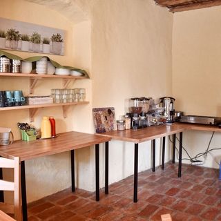 Do dyspozycji gości przygotowano wspólną, w pełni wyposażoną kuchnię, umożliwiającą samodzielne przygotowywanie posiłków. Na terenie całego obiektu zapewniono dostęp do sieci Wi-Fi. Standardowe wyposażenie obejmuje również ręczniki i podstawowe kosmetyki łazienkowe.
