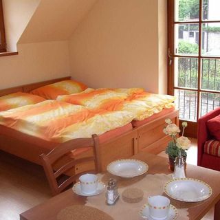 wrzesień 2021Super apartmán s terasou k posezení a vyhledem na hrad Karlštejn. Výborné snídaně s velkým výběrem jidla, ochotný, příjemný personál.Klidné prostředí,jsme absolutně nadšeni a určitě se tam vrátíme.