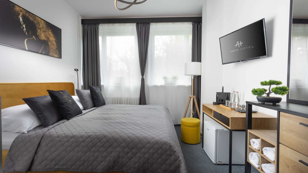 Dokładny zakres usług oferowanych przez AMITY HOTEL Praha (również tych za dodatkową opłatę) i dokładne wyposażenie pokoju są dostępne w informatorze poniżej i w informatorze konkretnego pokoju.
