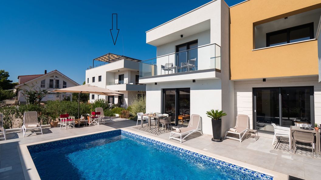 The apartment is modern clean and nicely decorated. Location is ideal between Zadar and Split. Stuff is friendly. - The bed mattress was not comfortable, it has sunken in the middle so I didn''t sleep very well. The pool is too close to other guests apartments so it feels like you invade thier space, we didn''t use the pool much.