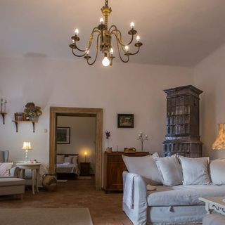 - Piec kaflowy w pokoju