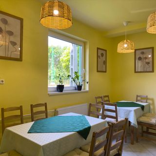 czerwiec 2022Könnyen megtaláltuk, volt parkolóhely, a személyzet kedves és segítőkész, extra kéréseinket is meg tudtuk beszélni. Közelben szuper étterem van, ahol vacsiztunk. A panzióban kaptunk reggelit, ami nekünk bőven elég volt, és finom is: friss zsemle, többféle felvágott, sajtok, vaj, lekvár, tea, gyümölcslé, kávé, tej, szóval mindenféle. A szoba kicsike, de kényelmesen elférünk hárman, tiszta és nyugodt, a város zajai csukott ablaknál egyáltalán nem hallatszottak, az udvar szép füves, árnyékot adó fákkal, tűzrakó hellyel.