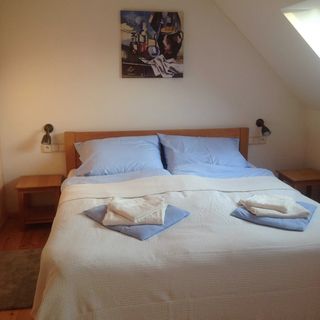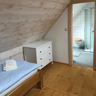 Pokoj velmi malý,nahoře v rohu pavouci,nebylo místo na zavazadla,žádná skřín popř.prostor na oblečení,židle žádná,pouze věšák na dveřích a ratanová police,na kterou se toho moc nevešlo.Žádala jsem klidný pokoj,dostali jsme jediný směrem k železnici,sic výhled na louku,ale vlaky jezdily celý den,noc,cinkání,houkání,brždění vlaků.Železniční stanice vzdálená 500m určitě není,mylné info.Mohli jsme být na toto upozorněni,určitě bychom se zde neubytovali.O dupání a praskání schodů ani nemluvě.Vrcholem byl v kempu pořádaný festival,hluk byl celé odpoledne až do 1h.do rána,dunění,které bylo slyšet i přes zavřené okno,na to nás opravdu mohl hotel upozornit.Za toto ubytování cena za pobyt neodpovídající.