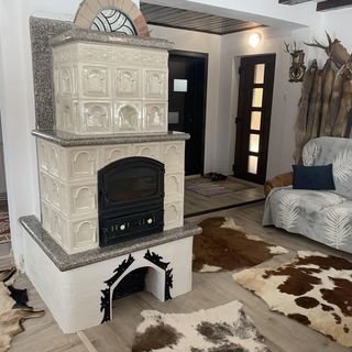 - Piec kaflowy w pokoju