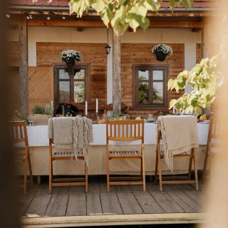 Do dyspozycji gości oddano także przestrzeń do rekreacji na świeżym powietrzu, gdzie można skorzystać z miejsca do grillowania oraz przygotować posiłek w kociołku.