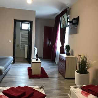 Pretul de 100 lei este doar pt camera mansarda, am vrut alta si mi s a cerut 135 lei dar pe site nu apare casa pret sau vreo specificatie. Camera nu avea cos gunoi, nu baterii la telecomanda, perne execrabile parca umplute cu ziare, plin de tantari fara vreo protectie, hartia igienica si unicul si traditionalul sapunel erau incepute, folosite deja. Camera nu avea vreun mic scaun sau ceva, bateria chiuveta se misca. Am inteles ca este un start up, cu inerentele probleme, dar eu ca turist platitor nu pot avea intelegere pentru tóate. Parcare nu exista. Strada acces pietruita nu asfaltata.