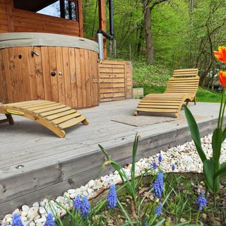 sierpień 2025Az erdő közepén, gyönyörű mesekertben kedves vidékies szállás. Tó, játszótér, süni, kacsák, tágas nyári konyha. Csendes, nincs a közelben más szomszéd. Hangulatos berendezés, kedves, rugalmas házigazdák. Még dinnyét is kaptunk. Reggeli kérhető, egy másik vendégházból hozzák.