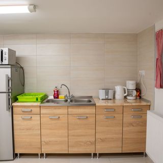 Közös nagy konyha, jól felszerelt, 10-12 ember simán tud egyszerre étkezni, korlátlan többféle kávéval és teával. Melegben érkeztünk, rögtön kínáltak hideg sörrel. :)