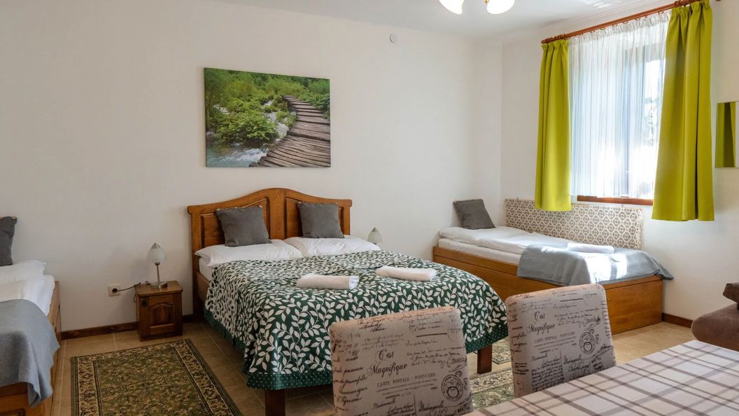 październik 2020Jól felszerelt szállás, 5-6 főnek is kényelmes. Padlófűtés, kényelmes ágyak. A konyha kompakt de mindent meg tudtunk főzni (bableves, rántotta). Van vízforraló, kenyérpirító, mikrohullámú. Nagyon kedvesek a háziak mindent kaptunk, amire még pluszban szükségünk volt.