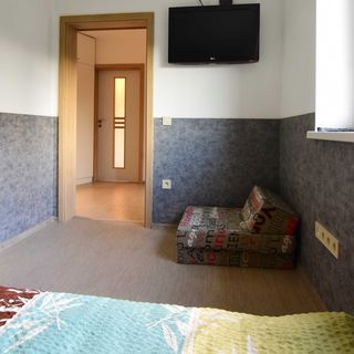 Na izbe nám chýbali nejaké vešiaky na bundy,mikiny- stačili by na stene v chodbe. Taktiež nejaký malý sušiak na osušky v kúpeľni,priestor tam na to určite je. Nebolo kde sušiť,mali sme ich povešané po dverách. V kúpeľni chýbala handra na utretie podlahy po sprchovaní,keďže na sprche neboli dvere,čo chápem,pretože kúpeľňa je v podkroví. Inak bolo všetko v poriadku. Izba bola čistá a pre 4 osoby postačujúca.