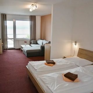 Niektóre pokoje w pensjonacie posiadają balkon lub taras, gdzie możesz się cieszyć miłym wieczorem na świeżym powietrzu.