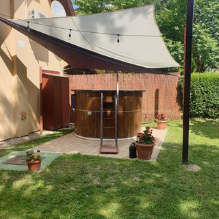 sierpień 2023Nagyon rendben van a házikó, minden mai igényt kielégített és extra nyugodt pihenést biztosított. Kellemes ágy, tiszta, friss ágynemű, kényelmes fürdőszoba, klassz társasjátékok, mindennel felszerelt konyha. Mi ketten utaztunk a párommal és a kutyánk, mindenki nagyon elégedett volt mindennel. Éttermek gyalogosan is elérhető közelségben, a tópart pár lépés a szállástól. Hétköznap nagyon csendes, hétvégén viszont van élet, ami azért nem annyira zavaró mint pl. Siófok bulinegyede. Rossz idő esetén a dézsafürdő jól kihasználható. Összegezve mindenkinek meleg szívvel ajánlom, aki kicsit elvonulna a világ zajától, imád fürdeni és szeretné elkerülni a Balaton parti tömegnyomort.