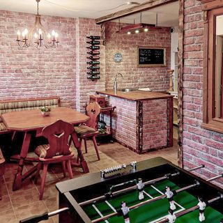 - Dom wykonany z drewna i cegły