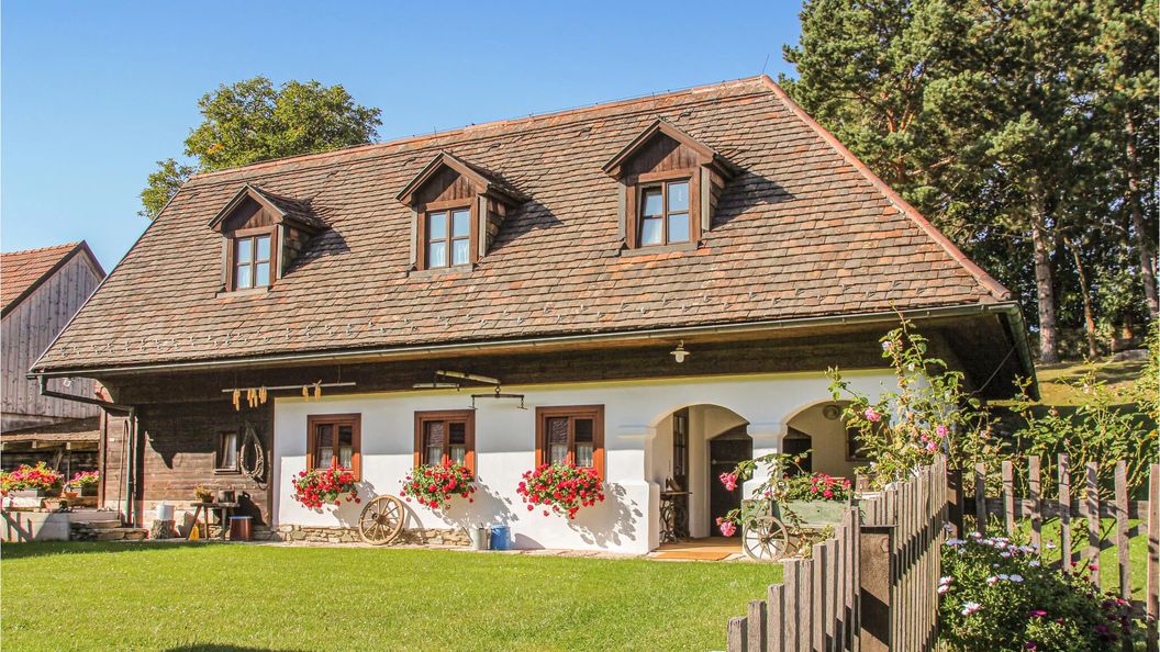 - Dom wykonany z drewna i cegły
