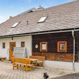 - Dom wykonany z drewna i cegły