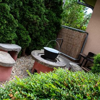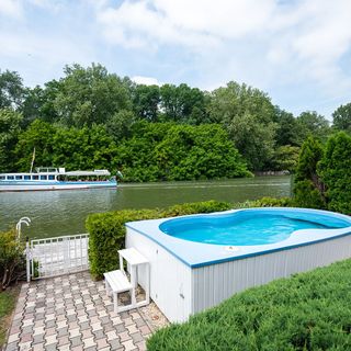 Ha nem konyhában akarsz raboskodni, remek kis bográcsozó-sarok van (használtam is), ahol egy-egy fröccsel/sörrel a kezedben elkevergetheted a műalkotásod...amíg a többiek a medencében/jakuzziban koplalnak. :) Horgásznál? Saját stég, alig pár lépés, és bedobhatod a pecát. Az a jó a helyben, hogy egységnyi térben ott van töményen minden. Rémes rím... Családnak is jó, de gyereket felügyelni kell, ne essen a folyóba. Szval nagymama nem ihat. :)