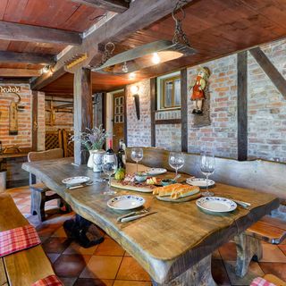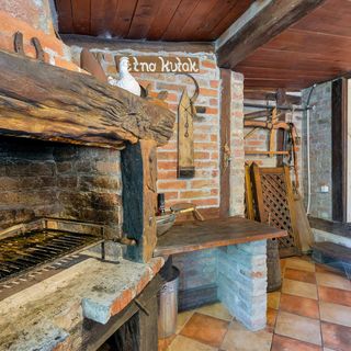 - Dom wykonany z drewna i cegły