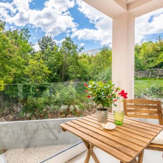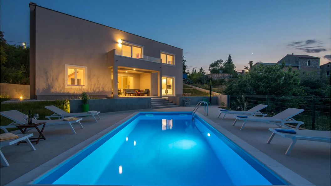 Kamienny dom wakacyjny położony w miejscowości Vrh na wyspie Krk, oferujący przestrzeń dla większych grup lub rodzin. Na terenie obiektu znajduje się ogród.