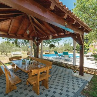 Obiekt oferuje zakwaterowanie w samodzielnym domu letniskowym, przeznaczonym dla maksymalnie 6 osób. We wnętrzach znajduje się kominek, a komfort termiczny w cieplejsze dni zapewnia klimatyzacja. Wyposażenie obejmuje również praktyczne udogodnienia, takie jak pralka, zmywarka, lodówka oraz kuchenka mikrofalowa, co ułatwia codzienne funkcjonowanie podczas pobytu.