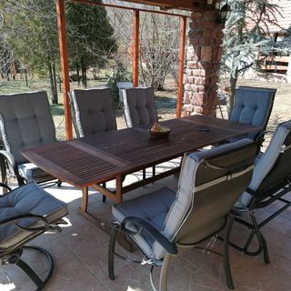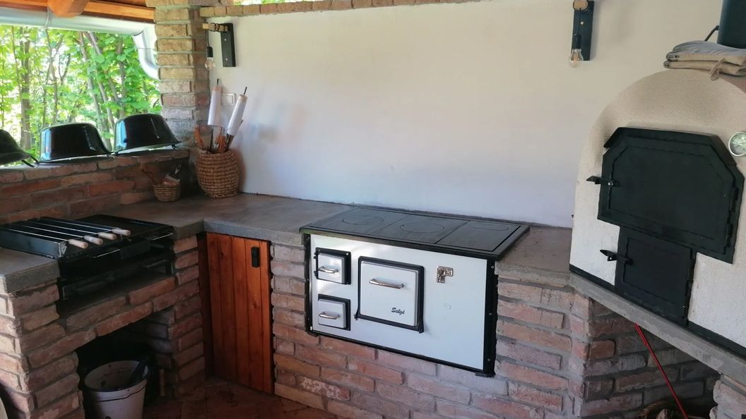 A ház tiszta volt, a legnagyobb melegben is jó idő volt bent. A kert nagy, rendezett, függőágyak, ping-pong asztal, kiülős helyek, játszótér is van. A nyári konyha részen töltöttük a legtöbb időt, 10-en körbe tudtuk ülni az asztalt és lehetett enni, beszélgetni, játszani. Még a kemencét ki sem próbáltuk, de kell valamit hagyni jövőre is :)