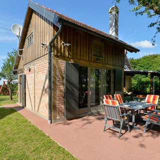 - Dom wykonany z drewna i cegły