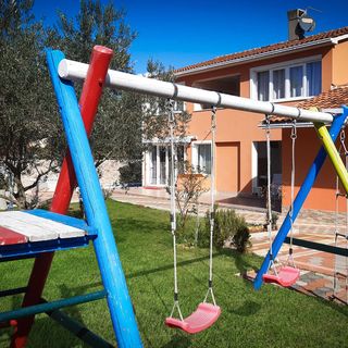 Centralnym punktem ogrodzonej posesji jest strefa rekreacyjna na świeżym powietrzu. Goście mogą korzystać z jacuzzi, a dla najmłodszych przygotowano trampolinę. Dostępne jest również miejsce do gry w piłkę nożną i rzutki oraz meble ogrodowe i sprzęt do grillowania.