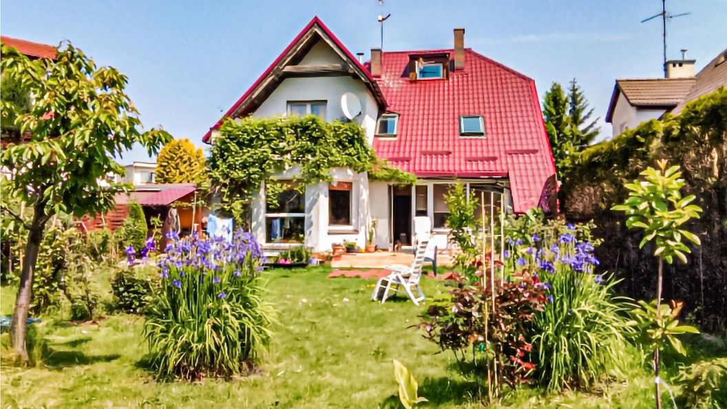- Dom wykonany z drewna i cegły