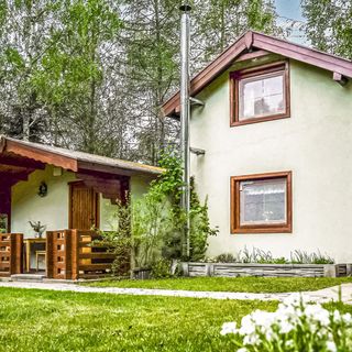 - Dom wykonany z drewna i cegły
