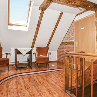 - Dom wykonany z drewna i cegły