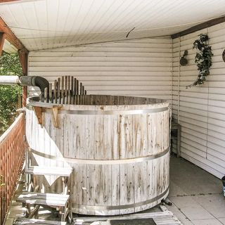 - Dom wykonany z drewna i cegły