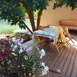 sierpień 2022A hely kiválóan felszerelt, ízlésesen, hangulatosan, gondosan berendezett. Egy üveg welcome bor és egy ásványvíz fogadott minket a hűtőben. Az árnyékos teraszon a nagy melegben is jól estek az étkezések. A tulajdonos segítőkész volt és kiváló tippeket adott.
