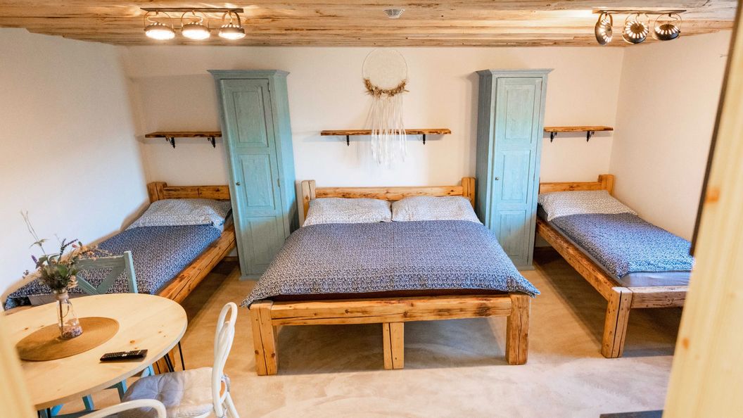 Hluční pánové z dalšího pokoje - dělníci UA národnosti, kteří v 7h ráno bouchali dveřmi a křičeli na chodbě. Vzbudili nás všechny (2 ubytovaní UA vzbudili dalších 15 hostů). Navíc se chovali, jakoby společná venkovní terasa byla jen pro ně. Zanechali nepořádek na stole (krabičky a popel z cigaret). Když si tam sedly naše děti v 18:30h večer a rozložily si stolní hry, pánové neustále chodili a kontrolovali, kdy už naše děti terasu opustí, aby si mohli zapálit a popíjet. Ale za to paní domácí nemůže, ani to nevěděla, nehlásili jsme to. Nechtěli jsme dělat zbytečně zle a kazit si tím víkendový pobyt.